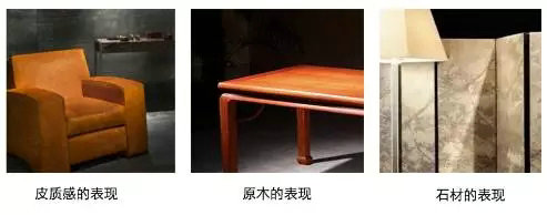 不同的家具材料,光線的表現(xiàn)手法也是不一樣的: