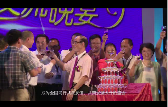 ▲晚會(huì)現(xiàn)場 播放的兄弟商會(huì)協(xié)會(huì)、合作伙伴祝福合輯,共敘20年友誼交流