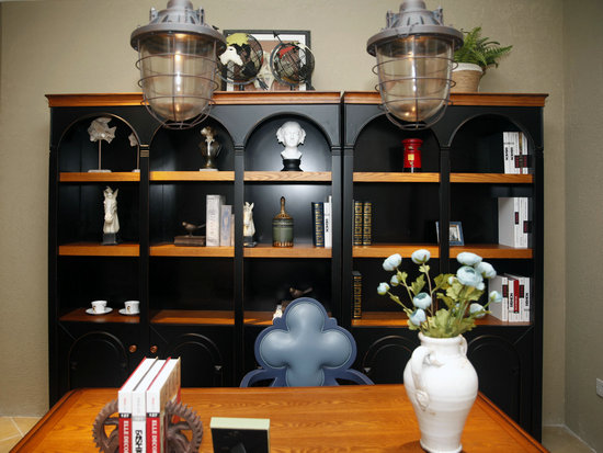 與傳統(tǒng)美式風(fēng)格一樣,美式鄉(xiāng)村風(fēng)格設(shè)計(jì)下的書房,則變得簡單,卻透露著文化氣息,唯一不同的是,軟裝較為豐富。這種風(fēng)格的書房里陳列的被翻卷邊的仿古書籍、顏色泛黃的航海地圖、收獲季節(jié)的油畫、一支單調(diào)的鵝毛筆……即便是簡單的裝飾品,都能為這份文化氣息加多幾分。