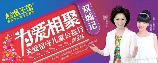 由中國(guó)文學(xué)藝術(shù)基金會(huì)主辦、松堡王國(guó)承辦的“為愛相聚•雙城記” 大型關(guān)愛留守兒童公益行于今夏盛大開啟。自7月16日至7月31日將接受愛心小天使的報(bào)名,屆時(shí)將從深圳、合肥、南昌、蘇州、石家莊五座城市選拔出的愛心小天使與我們共同前往江西瑞金關(guān)愛留守兒童。選出來的家庭由松堡王國(guó)全程承擔(dān)行程費(fèi)用,同中國(guó)文學(xué)藝術(shù)基金會(huì)、明星組成愛心天使團(tuán)前往江西瑞金慰問留守兒童,并進(jìn)行三天四夜的尋愛之旅,此次活動(dòng)旨在呼吁更多社會(huì)人士關(guān)注留守兒童,讓他們感受到社會(huì)的溫暖,讓他們感受到愛從未離開!