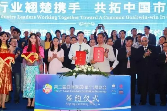 開幕儀式上,好百年集團先后與亞洲家具聯(lián)合會、泰國家具協(xié)會、馬來西亞家具總會、印度尼西亞家具與工藝品行業(yè)協(xié)會簽署雙邊戰(zhàn)略合作協(xié)議,保持著政治、行業(yè)、企業(yè)的優(yōu)化組合和亞洲家具行業(yè)間的緊密聯(lián)系,這標志著好百年集團尋求“一帶一路”政策下全球“多邊發(fā)展,共榮共贏”戰(zhàn)略落到實處。同時,亞洲家居產(chǎn)業(yè)(南寧)合作會議也同期召開,研究探索利好政治條件下亞洲家具行業(yè)共同繁榮發(fā)展之路。