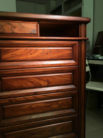 這是油漆之后的不同的效果,從這個過程可以看到,白臘木這種珍貴的木材是如何從山林里邊被伐木工拖出來然后經過加工變成了一塊預備做家具的優(yōu)質板材。所以家具是木材“生命力”的延續(xù),我們有理由讓它更精彩,更有價值。