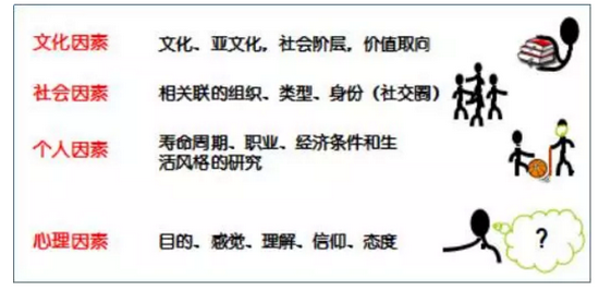 心理因素包括購買和使用的目的、感覺、理解、信仰和生活態(tài)度等。如:有些群體比較傳統(tǒng)和謹慎、有些則愿意嘗試新事物,有些個性平和、被動,有些則比較沖動。心理因素會有相應(yīng)的行為呈現(xiàn),如:有些會不斷調(diào)整,有些則不太愿意麻煩;使用激烈度也有不同;有的群體具有品牌的犬儒主義傾向,有的沒有那么在乎;有的熱情積極,有的消極或無所謂,有的還可能是敵視的。