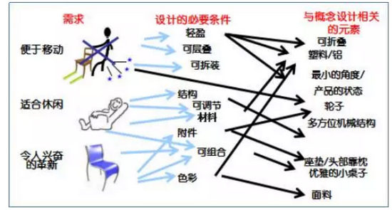 轉(zhuǎn)化需要經(jīng)過兩次“翻譯”,第一次“翻譯”是需求轉(zhuǎn)化為設(shè)計的必要條件,第二次“翻譯”是設(shè)計的必要條件轉(zhuǎn)化為與概念設(shè)計相關(guān)的要素,得到這些要素后概念設(shè)計就水到渠成了。當(dāng)概念設(shè)計完成以后,后面的工作只是技術(shù)層面的事情了,這對于專業(yè)設(shè)計師而言已經(jīng)不是問題。