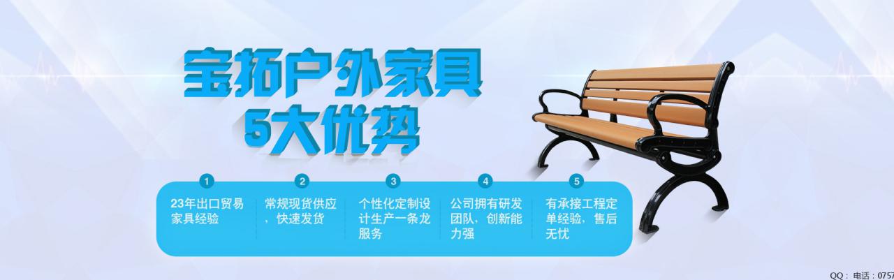“寶拓戶外家具”是中國家具之都“佛山”生產高檔戶外家具制造商之一,寶拓專注于戶外休閑家具20年,主要生產戶外休閑椅,公園椅,藤藝桌椅,鑄鋁桌椅,庭院家具等高端戶外休閑家具。依托新穎的產品設計和過硬品質,已經贏得了國內大量的市場。”寶拓戶外家具的負責人陳小姐說,在今后的一段時間里,我們把主要精力投入到國內私人訂制市場,引入歐美優(yōu)秀設計師,做好自主研發(fā)設計工作。