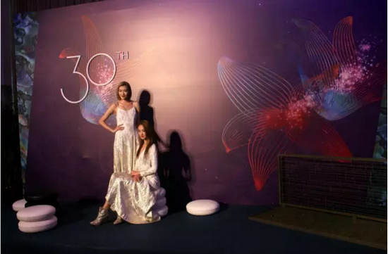盛典的會場與眾不同,置身其間就如同置身于浩瀚的星空,周圍是濃情的紫和閃爍的星光,而盛典中隨處可見的logo是在這星光下開放的百合花,花中可見顆顆珍珠。在西方,百合花是30年結(jié)婚紀念日花;在東方,珍珠是貝殼含辛茹苦孕育的精華。如此既有天地合一的意蘊又具備西方視野的設(shè)計一改往常,結(jié)合邀請函所言“去迎接那星辰浩瀚的時代”,怎不讓人遐想無限。