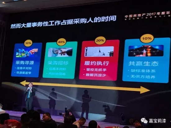 經(jīng)過層層角逐和嚴(yán)格評選,嘉寶莉工程漆一路過關(guān)斬將,以排名第三的優(yōu)異成績斬獲“建筑涂料類十強(qiáng)供應(yīng)商”桂冠。工程漆戰(zhàn)略集采總經(jīng)理郭鴻義先生應(yīng)邀參會并登臺領(lǐng)獎。