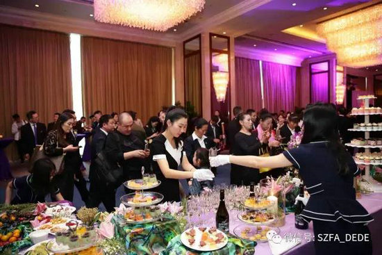 以主題畫面形象為基礎(chǔ),結(jié)合活動場景及其所需物料的特征,DEDE設(shè)計團(tuán)隊以強化視覺沖擊、積淀品牌記憶為原則繼續(xù)展開系列設(shè)計創(chuàng)作。從宴會舞臺到活動簽到處,從嘉賓邀請函到與會人員服飾,從晚宴餐牌到茶點,DEDE設(shè)計團(tuán)隊不僅確保宏觀效果的完美呈現(xiàn),更是嚴(yán)格把控每一處細(xì)節(jié)的品質(zhì)。