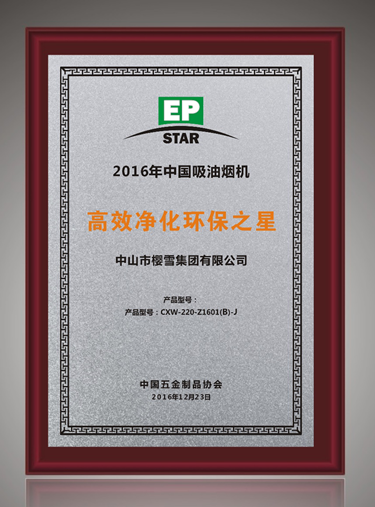 11月29日,中國五金制品協(xié)會(huì)正式公布了2016年家用吸油煙機(jī)及集成灶“高效凈化環(huán)保之星”產(chǎn)品名單,櫻雪超魔007智能煙感吸油煙機(jī)(CXW-220-Z1601(B)-J),憑借直流變頻技術(shù)、智能煙感技術(shù)、高效環(huán)保節(jié)能技術(shù),獲得了評審專家的一致認(rèn)可,與方太、老板等知名廚電品牌同獲“高效凈化環(huán)保之星”稱號(hào)。