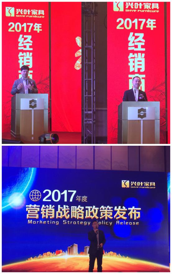興葉家具副總經理李福展對一年來整體團隊的工作實績進行了簡單回顧,表達了廠商攜手突圍,實現(xiàn)共贏的良好意愿。營銷總監(jiān)史立志就營銷板塊工作進行了匯報,并部署了2017年興葉營銷層面戰(zhàn)略規(guī)劃。三贏國際吳建華老師回顧了2016年與興葉合作的點滴,吳建華期望在2016年合作過億的基礎上三贏國際和興葉家具能夠加深合作,共同把興葉品牌做大做強。