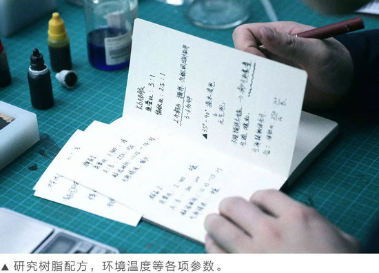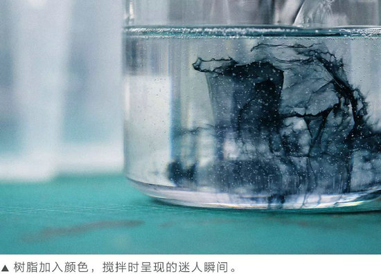 在大量尋找解決方法時(shí),黃國棟意外地發(fā)現(xiàn)了樹脂獨(dú)特的功能。液態(tài)下的樹脂原來可以被塑造成任何形狀,與殘缺的木頭正好形成陰陽互補(bǔ)之勢(shì)。