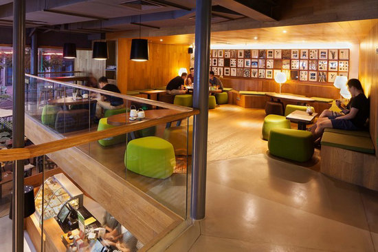 Teabank是一個為科技達人們設(shè)計的空間,不止可以在忙碌之余休憩。二樓還設(shè)有一個開放式的圖書館,館內(nèi)藏書2萬冊。同時,也有許多座位,供給閱讀、簡餐和社交活動。