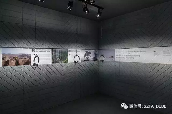 我們設(shè)計了一個展廳,在經(jīng)過一段密閉艙式的空間后,參觀者會從外界刺耳的噪音回到沉靜中、從混亂到平靜、從黑暗到光明。在這個感官空間里,我們用一種具有驚人隔音性能的材料,讓參觀者與外界世界切斷。特質(zhì)的耳機會播放大自然的聲音,讓你沉浸其中,在你面前展開的是大自然的景觀。當(dāng)你繼續(xù)往下走,你會發(fā)現(xiàn)我們這個精心設(shè)計的極簡主義路線、充滿透明度的體驗設(shè)計讓你的幸福感增加。