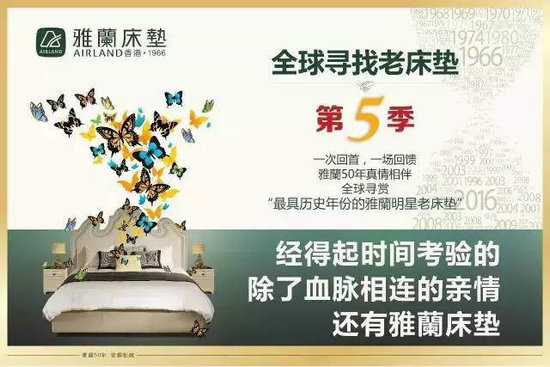 從1966年對(duì)舒睡品質(zhì)的探索,到2016年執(zhí)著的為美而生的信念,雅蘭用一種五十年的堅(jiān)持和夢(mèng)想,一種歷經(jīng)時(shí)光而不改的美好,鑄就一代代人對(duì)于睡眠的“夢(mèng)”。2017年,作為雅蘭集團(tuán)的第二個(gè)五十年的開(kāi)端,是一種希冀,更是一種挑戰(zhàn)。