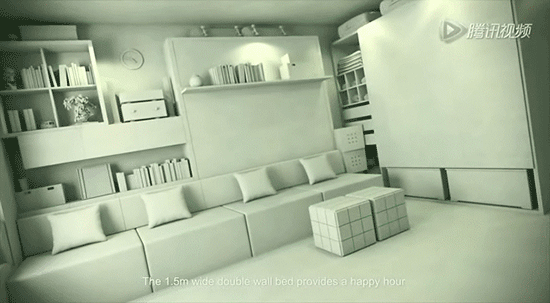 超級儲物柜,在推拉翻轉(zhuǎn)之間,變出一個個辦公、影院空間;