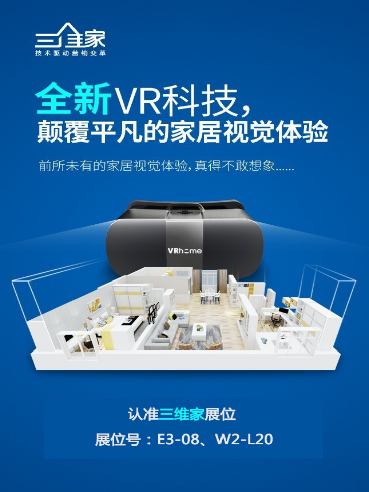 當(dāng)你在各個(gè)品牌的選擇上眼花繚亂時(shí),當(dāng)你在各個(gè)展廳的穿梭中滿身疲憊時(shí),你可以來(lái)到E3-08、W2-L20三維家的展廳,體驗(yàn)三維家?guī)?lái)的最新VR設(shè)備。現(xiàn)場(chǎng)掃碼參與活動(dòng)就可環(huán)游你未來(lái)的家。
