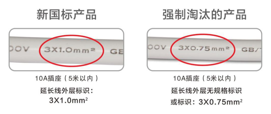 也就是說,新國標(biāo)規(guī)定10A排插延長線線芯不得小于1mm²,而市面上仍在流通的0.75mm²線芯規(guī)格的插線板,均屬于明令限期要淘汰的產(chǎn)品。