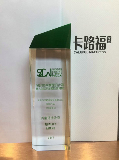 卡路福獲得2017深圳時(shí)尚家居設(shè)計(jì)周暨32屆深圳國(guó)際家具展質(zhì)量環(huán)保金獎(jiǎng)