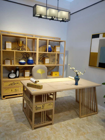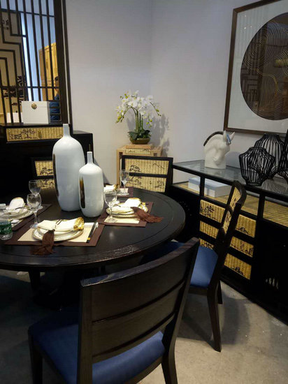 合晟東方的展位現(xiàn)場,一幅幅已經(jīng)縹緲的山水畫感覺撲面而來。細(xì)品中既能感受到時(shí)尚現(xiàn)代元素,又能品味出傳統(tǒng)文化意味。柳編與實(shí)木的結(jié)合,巧妙的構(gòu)思,編織出時(shí)尚的圖騰案,美而不俗,簡奢時(shí)尚?;张芍心乔嗌骄G水、阡陌縱橫的獨(dú)特建筑風(fēng)格,為合晟東方的產(chǎn)品提供許多設(shè)計(jì)靈感,更為其增添些許傳統(tǒng)文化的更多內(nèi)涵。
