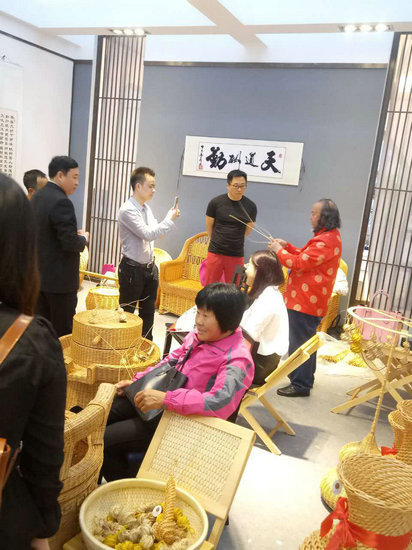 柳編大師楊進(jìn)邦現(xiàn)場編織作品