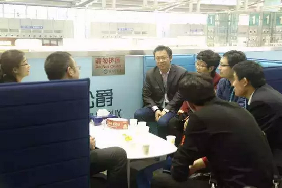 展會期間,北京家具行業(yè)協(xié)會會長、山東家具行業(yè)協(xié)會會長一行來到VIP公爵區(qū),與展辰集團品牌總監(jiān)蔣健、北京展辰總經(jīng)理張君共同探討行業(yè)發(fā)展方向。