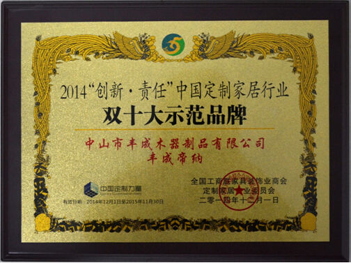 豐成帝納憑借創(chuàng)新的設計,精益求精的品質獲得了業(yè)界權威機構全國工商聯(lián)家具裝飾業(yè)商會的認可,2013獲得其頒發(fā)的“別墅豪宅首選品牌”,2014年獲得“雙十大示范品牌”。產品遍布國內32個省、市和自治區(qū)等區(qū)域市場及遠銷中亞等國家。代理商遍及國內大中城市,都是出于對豐成帝納純粹的愛和無價的信任。