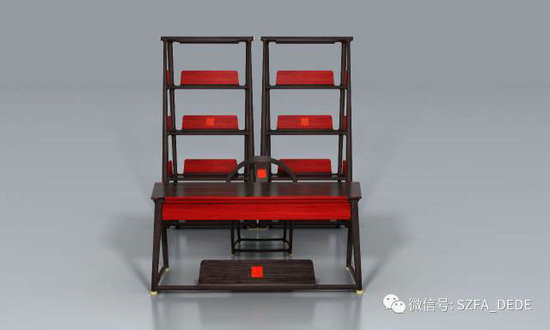 漢樂府書房取漢代常用的紅、黑兩色,色彩明快,對(duì)比強(qiáng)烈。配以漢風(fēng)印章,平直方正,風(fēng)格雄渾典重,古樸大氣。其立面一改傳統(tǒng)方方正正的造型,全部設(shè)計(jì)為梯形,這種不規(guī)則的形態(tài),就像初創(chuàng)時(shí)期的漢朝,未成規(guī)矩但生氣勃勃。漢樂府書房承載著豐富的傳統(tǒng)文化以及氣勢(shì)磅礴的大國精神,也代表了祥利人在中國紅木家具設(shè)計(jì)史上的努力追求和不懈探索——他們有著大漢王朝一樣不斷突破的初創(chuàng)精神。