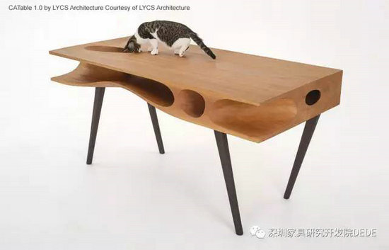 所有鏟屎官(寵物主人)都知道它們最喜歡在鍵盤上伸展身軀以此消遣,而主人卻是要在電腦上工作的。郝阮(音),一位來自中國杭州LYCS建筑事務(wù)所的設(shè)計(jì)師,想出了一個(gè)應(yīng)對(duì)措施,也就是上圖所呈現(xiàn)的“貓桌游樂場(chǎng)”,有了它,鏟屎官們終于可以安心工作了。這個(gè)設(shè)計(jì)是全實(shí)木的,手工制造。功能方面一目了然,由很多隧道、開口,讓貓咪們?cè)谏厦娉浞值匦D(zhuǎn)跳躍,以此分散它們?cè)谵k公桌上的注意力。于是乎,貓咪和主人能夠和平共處一室了。
