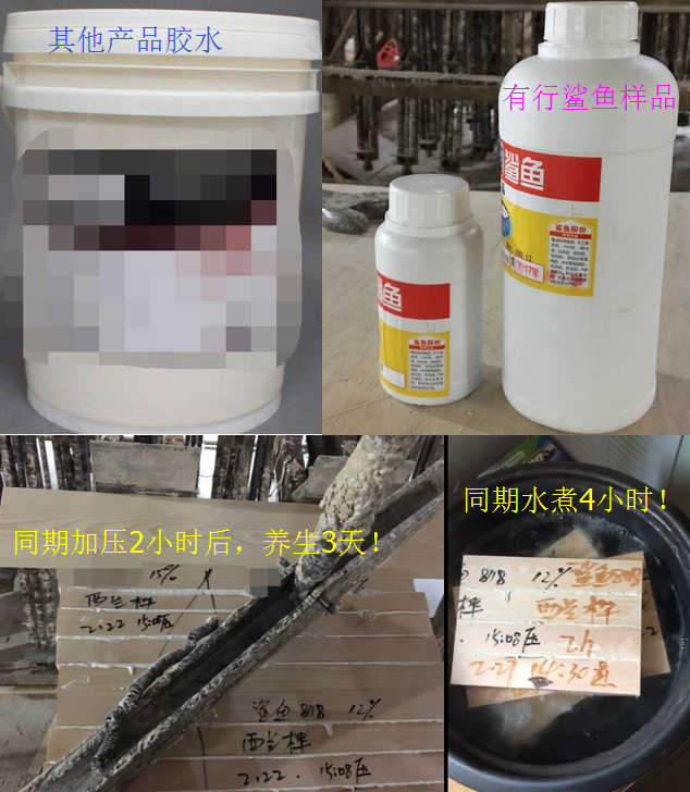 煮了大概4個(gè)小時(shí),有行鯊魚(yú)的拼板膠水煮無(wú)開(kāi)裂,使勁摔依舊不開(kāi)裂!其他產(chǎn)品你可以自己看下圖。