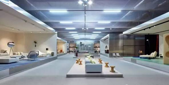 ▲Cassina 90展廳內(nèi)的地面、家具與配飾均采用柯布西耶偏愛的現(xiàn)代建筑材質(zhì)。