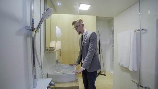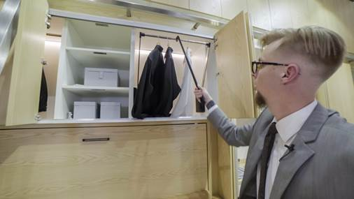 單身青年或小情侶的私密天地,1.8米柔軟大床、大型衣柜、書柜設(shè)計(jì),帶來溫馨自由的快樂時(shí)光。海福樂silent-fold 40 折疊推拉門,靜音開啟,省力省空間。各種領(lǐng)帶架,襯衫架,襪子格,臟物籃,褲架等一應(yīng)俱全,體現(xiàn)多種人性化收納設(shè)計(jì)。