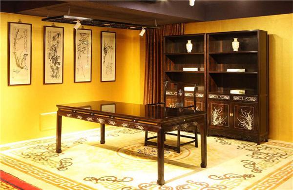 寧波骨木鑲嵌工藝具有濃厚的地方特色,為了實現(xiàn)跨區(qū)域文化設計、工藝融合,國家級明式家具制作技藝傳承人許建平大師與寧波骨木鑲嵌傳承人、浙江省工藝美術大師甘金云通力合作,歷時一年的努力,最終創(chuàng)作出了這一套以明式家具為載體,骨木鑲嵌表現(xiàn)點綴的“蘭韻”書房作品。