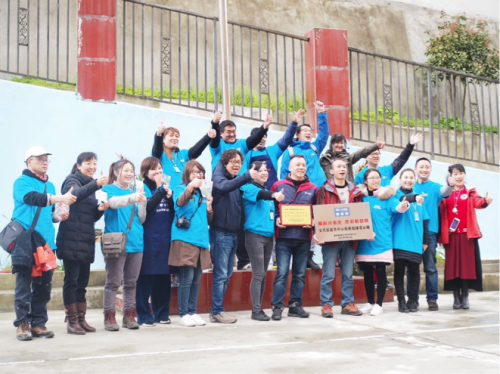 駱駝漆愛心大使接受鹽井中心校負(fù)責(zé)人贈送公益牌匾