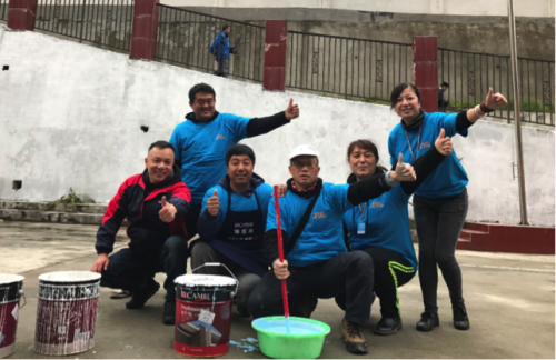 3月30日,駱駝漆攜手中國扶貧基金會、君愛公益發(fā)展服務(wù)中心,來到了成都雅安寶興縣鹽井中心校,為學(xué)校的外墻進行了翻新施工。