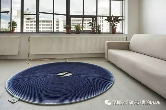 Siem-Pabom工作室專門設(shè)計(jì)的舒適地毯,可以加熱到60°C,從而減少空氣中的過敏原數(shù)量。圓形地毯采用繩索制成,最終達(dá)到液壓連接。例如,連接到散熱器,或者連接到另一個熱源。每兩個月,熱水就會開始通過內(nèi)部包覆的管循環(huán),達(dá)到空氣凈化的目的。同時(shí),地毯也可作為環(huán)保地板采暖系統(tǒng)的重要部件。