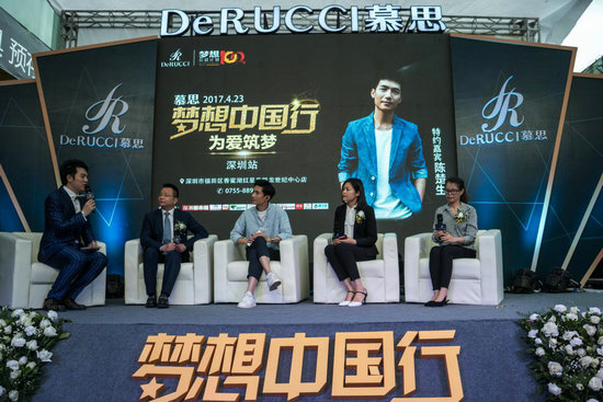 在LED大屏幕播放完公益視頻之后,現(xiàn)場(chǎng)舉行了一場(chǎng)簡(jiǎn)短的而深刻的公益論壇。陳楚生與慕思寢具銷售中心總經(jīng)理江濤、紅星美凱龍深圳世紀(jì)中心商場(chǎng)常務(wù)副總經(jīng)理蔡世芳、慕思寢具深圳分公司總經(jīng)理許皓玲、中國(guó)扶貧基金會(huì)代表盧志芳共同分享了自己的公益理念,同時(shí)也號(hào)召更多的人關(guān)注公益、參與公益。