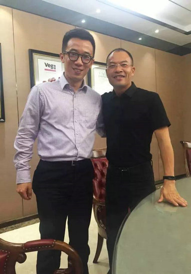 (左一)美國北卡羅納州駐華辦公室主任丁志寧先生與華葉家博園董事長黃錦標先生(右一)