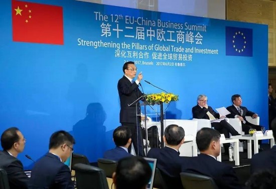“中歐全方位合作穩(wěn)步推進,雙方人民都從中受益。雖然中歐經(jīng)貿(mào)關(guān)系中合作與競爭并存,但合作共贏是主流。我們愿同歐方加快商談高水平的投資協(xié)定,提高貿(mào)易自由化便利化水平,促進雙邊貿(mào)易平衡發(fā)展,營造更開放、更公平、更規(guī)范的投資環(huán)境,形成雙向開放、平等開放、互利雙贏的格局。” 6月2日,國務(wù)院總理李克強在比利時布魯塞爾埃格蒙宮出席第十二屆中歐工商峰會并發(fā)表主旨演講,其中對于中歐未來合作方向的展望,在現(xiàn)場400多位中歐工商界代表中激起了極大共鳴。
