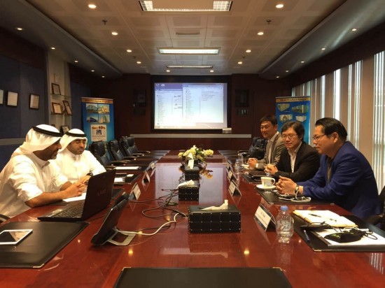 △ 丁佐宏就在阿聯(lián)酋投資與項目合作方董事局主要代表進行商務(wù)洽談