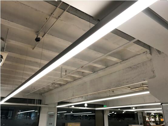 再比如,由于建筑結(jié)構(gòu)限制,需要盡量減少對結(jié)構(gòu)的改變,再結(jié)合辦公位置,燈具盡量沿著梁排布,需要兼顧到天花的光分布,所以需要選擇出光面較寬的燈具,但是又不能上下出光。針對此,歐普商用照明定制了三面出光的辦公吊燈。