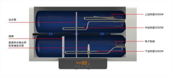 極速式熱水器在巴黎發(fā)布時,就讓一向走在時代巔峰的巴黎人民瘋狂。這熱水器到底有什么魔力受到如此歡迎。打破傳統(tǒng)熱水器單膽多加熱管,熱效率低,加熱慢等弊端,開創(chuàng)行業(yè)梯度分層加熱方式。雙膽梯度分3層3000W/2000W/3000W依次自上而下逐步加熱,用更科學(xué)的方式對熱水進行加熱,提高加熱效率,加熱速度自然得到提高。即開即洗,過去半個小時甚至一個小時的加熱等待不會再有,按照當(dāng)今快節(jié)奏的生活需求量身打造,阿詩丹頓極速式熱水器是你的效率管家。