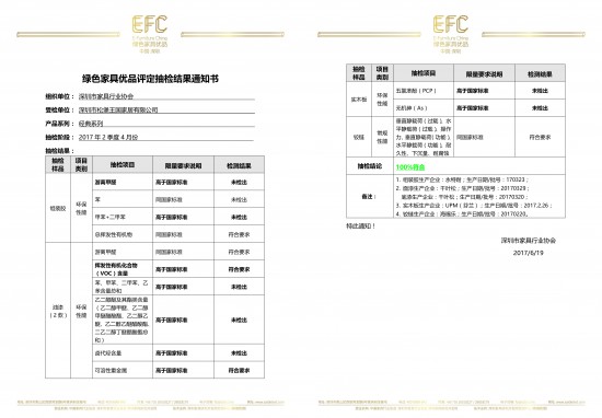 6月19日,松堡王國(guó)的“中國(guó)綠色家具優(yōu)品”二季度4月份的抽檢工作正式完成。
