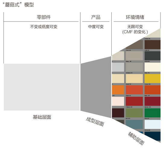 于是,開發(fā)產(chǎn)品變成了開發(fā)并構(gòu)筑零部件平臺。我們在《家具企業(yè)的頂層設(shè)計(jì)》與《談?wù)劥笤O(shè)計(jì)概念》等文章中所給出的“蘑菇式”模型在傳統(tǒng)成品家具企業(yè)中始終無法推廣,而有些定制家具企業(yè)卻已經(jīng)開始認(rèn)真地執(zhí)行。