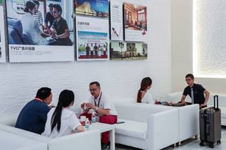 每年的建博會,全國各地超過200名軒尼斯終端骨干成員;其中包括分公司負責人、軒尼斯商會成員、經銷商代表都前來總部和展館進行支援,一些經驗老道的經銷商還為新加盟成員和展會現(xiàn)場的意向客戶分享了軒尼斯的經營心得。本屆展會“新中式”主題及幾款新品的發(fā)布,大大增加了新老經銷商的信心。