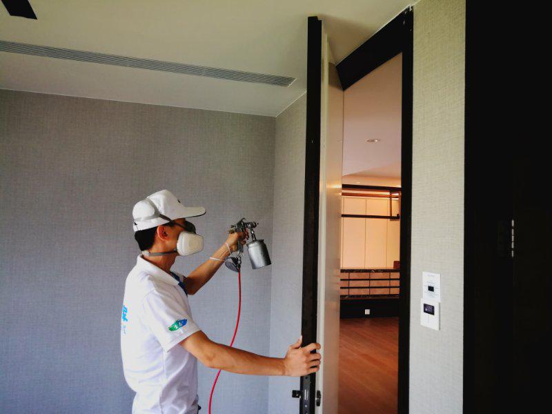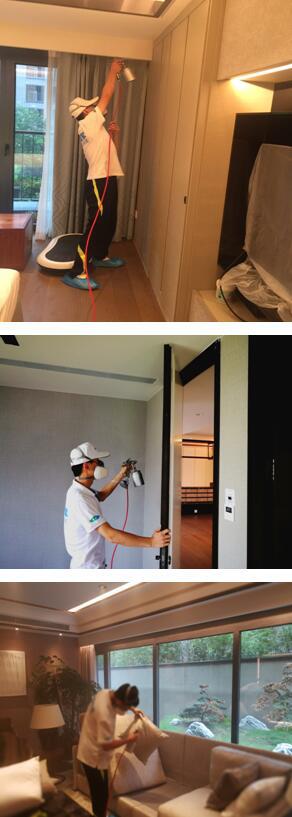 專業(yè)治理前,要將門窗再次關(guān)閉,先根據(jù)裝修材質(zhì),使用對應(yīng)的分解劑,通過高氣壓噴涂方式,把房間外露內(nèi)藏的地方全部霧化噴涂一遍,先從木制產(chǎn)品開始,到布藝產(chǎn)品,再到纖維產(chǎn)品、房頂,尤其要留意的是窗簾、墻紙、家居內(nèi)部、床墊這些地方。