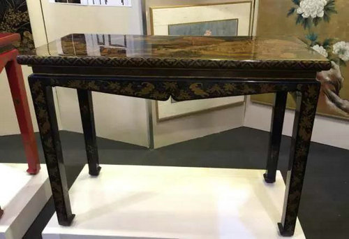 廈門市鴻風(fēng)堂藝術(shù)品有限公司 手繪畫(huà)天然漆十八世紀(jì)最具中國(guó)藝術(shù)風(fēng)格描金八寶吉祥紋開(kāi)光細(xì)密山水圖琴桌作品