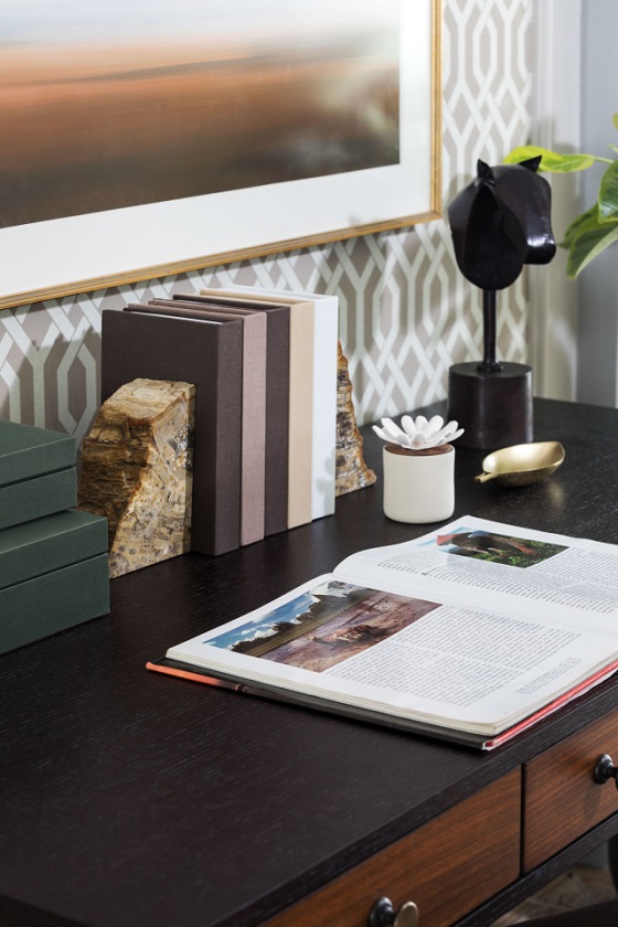在客廳里擺放書桌與書柜是別具一格的創(chuàng)意。