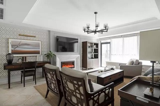 設(shè)計(jì)師宋夏:“因?yàn)榭蛷d的空間比較大,而整體家居的配色是厚重的,如果采用對(duì)稱設(shè)計(jì),會(huì)使整個(gè)空間拘泥常規(guī),缺少了靈性。選擇在客廳放置這樣書桌和書柜,也為家庭成員騰出休憩空間。父母在閑暇時(shí),還可以在客廳輔導(dǎo)孩子的功課,增加一家人的交流時(shí)間。”
