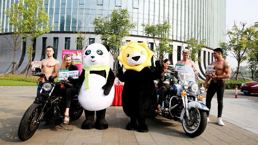 現(xiàn)場(chǎng),熊貓YOYO與小獅子應(yīng)廣大伙伴的呼聲,與專(zhuān)業(yè)模特酷帥走秀、并與哈雷機(jī)車(chē)來(lái)了個(gè)親密接觸。更有小朋友鬧著要體驗(yàn)“萌物人生”,戴著可愛(ài)的獅子頭,在陽(yáng)光下做一朵萌萌噠的向日葵。