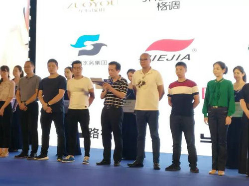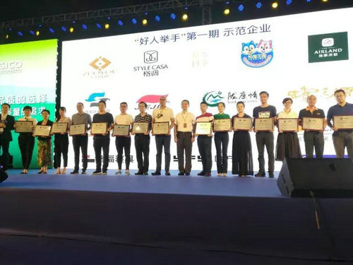 九家優(yōu)品企業(yè)代表獲牌(左四開始:左右沙發(fā)、雅蘭床墊、松堡王國、七彩人生、仁豪居品、圓方園、格調(diào)家私、路福寢具、德勝家具)